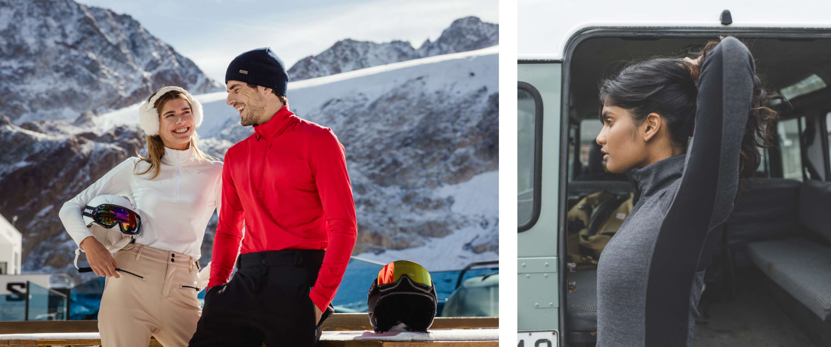 Wil je droog én comfortabel op de latten staan, dan kies je – afhankelijk van het weer – best voor een warme basislaag (van minstens 200 g/m2) en een technische ski-jas met een ademend membraan.