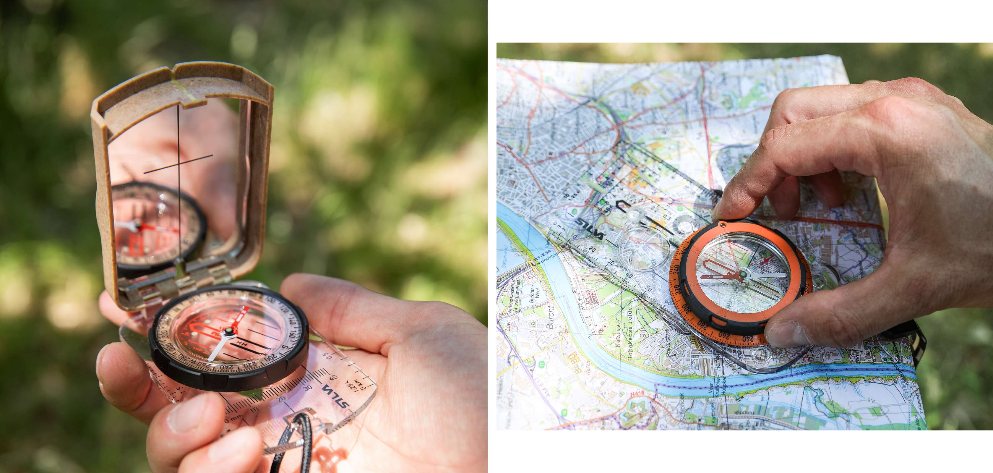Overdag oriënteer je je aan de hand van de stand van de zon – die komt op in het oosten en gaat onder in het westen, weet je nog. Op de middag staat ze op haar hoogste punt, in het zuiden. Als je je weg kwijt bent in een desolaat landschap, is de kans groot dat je in rondjes loopt. Om dat te vermijden, kies je bijvoorbeeld om naar het zuiden te lopen en doorheen de dag te navigeren met de zon. Is het bewolkt en zie je de zon niet door het wolkendek? Dan achterhaal je toch makkelijk haar positie. Zet een mes of balpen of takje op je hand en kijk van welke kant het licht erop valt. Aan de andere kant zie je de schaduw van het voorwerp.