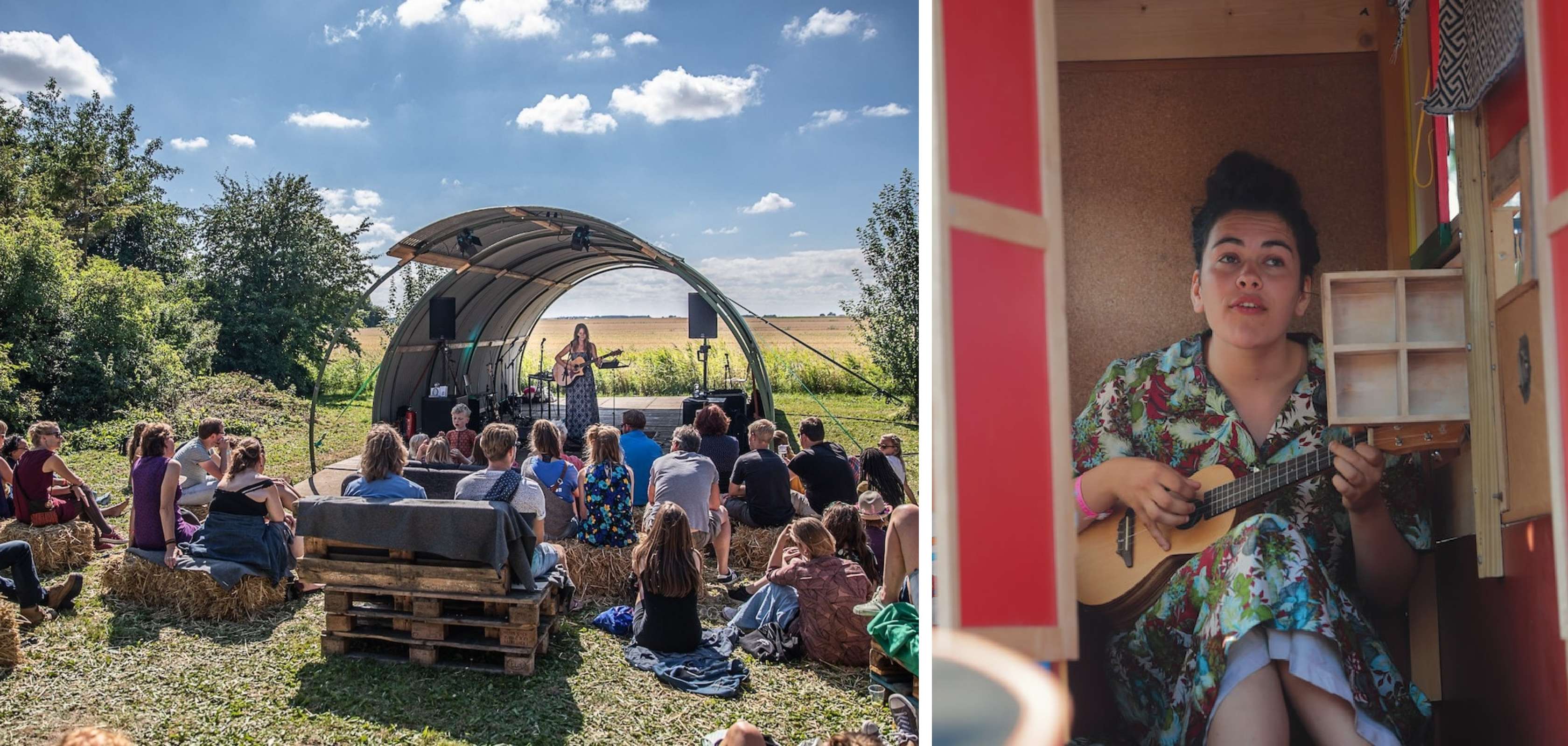Tuinen nodigen uit tot optredens, schuren transformeren tot sfeervolle cafés en tuinhuisjes dienen als gezellige logeerkamers. Ga op in het artistieke dorpje terwijl je per fiets van de ene naar de andere locatie beweegt, omgeven door uitgestrekte natuur en de gastvrijheid van lokale bewoners.