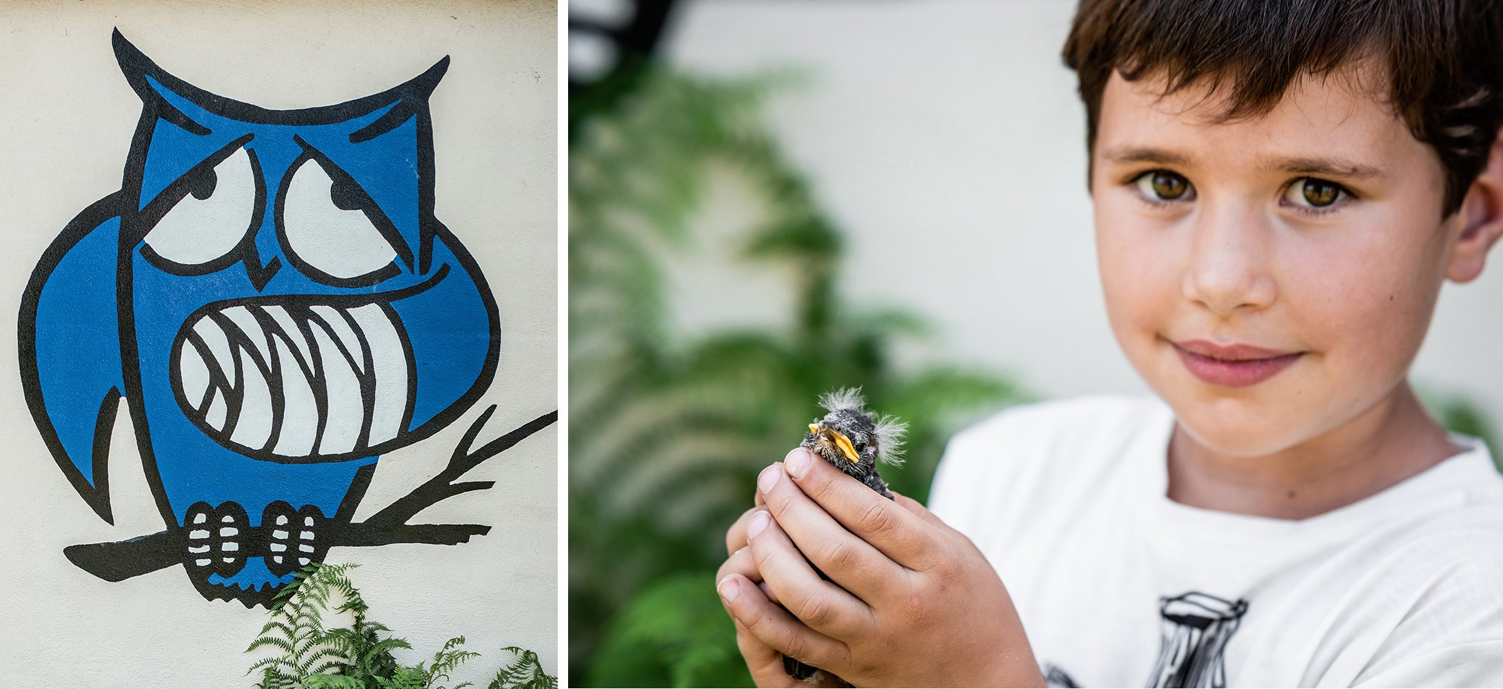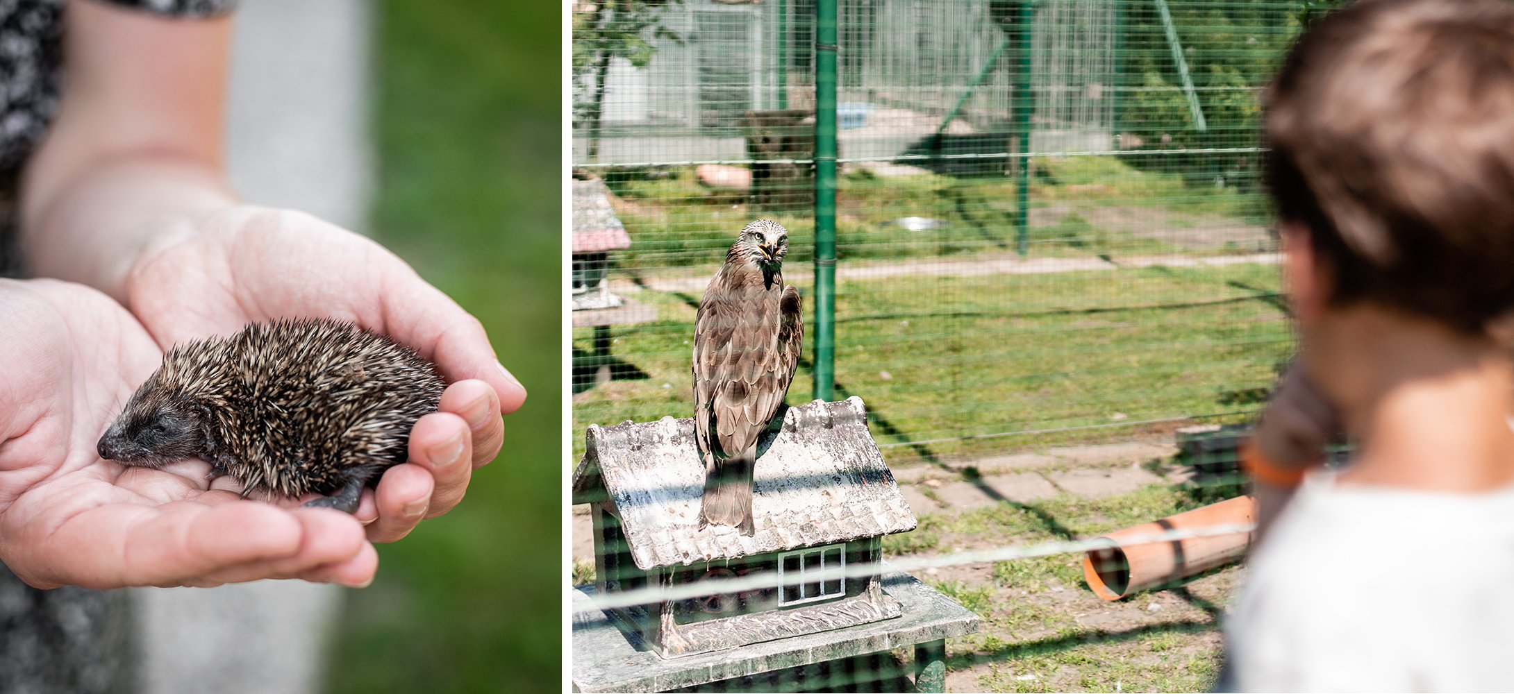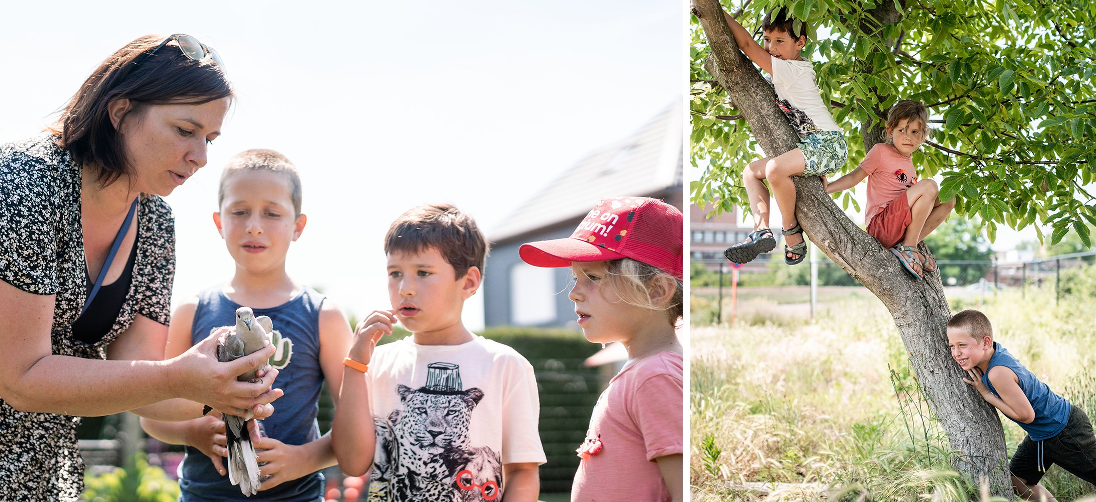 Jona en haar vriendjes plakken er tegen de ruiten. “O, twee eekhoorns! En kleine vogeltjes!” John haalt er een spreeuw en een baby-egel bij voor de foto’s. “Uitzonderlijk kan het wel even om hen vast te nemen. Dan kan je ze eens van dichtbij bekijken.”